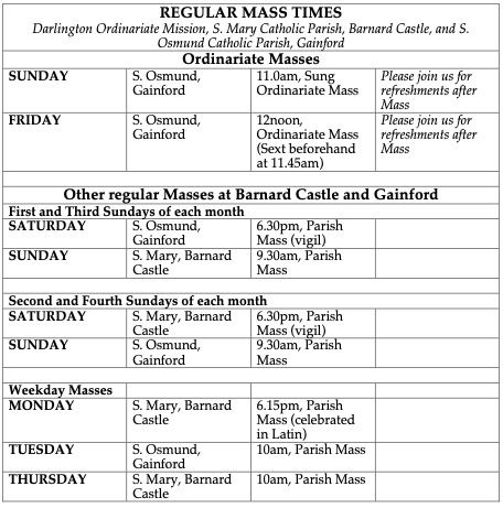 Welcome to the website of the Darlington Group of the Personal Ordinariate of Our Lady of Walsingham.